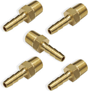 1/8 inch barb to 1/8 inch NPT male brass hose barb fittings. These hose barb fitting can be used to connect PU, rubber, silica gel hose or PVC tube. These are widely applied to water, gas, oil, fuel, air tools, air compressor, automatic manufacturing operation, aircraft control, and tire installation in industries, agriculture, mining, road construction, firefight, and aviation