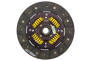 3000405 is a performance street disc and the most popular disc purchased. It features premium organic materials with high copper content for better heat transfer. Performance street discs allow for quicker shifting and smooth engagement. These discs feature a reduced marcel for faster shift action to complement ACT pressure plates. ACT spring-centered assemblies use bushings and cone springs similar to factory clutch discs. This creates frictional dampening, which improves clutch life and reduces noise. Quiet operation with increased strength and reliability.