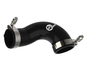 aFe POWER BladeRunner turbo muffler delete pipe replaces the factory turbo muffler located between the turbo compressor outlet and the hot side charge pipe. The straight through oversized design tremendously increases flow and turbocharger sound by creating a smooth transition between the turbo and intercooler tube. CNC machined from 6061-T6 aluminum then finished in red anodizing also provides superior strength and long lasting durability. This turbo muffler delete kit includes high-quality, stainless-steel, spring-loaded T-bolt clamps and a heavy-duty, 5-ply, polyester reinforced silicone coupling for superior strength and durability. Finished with Red Anodizing and a unique laser-etched aFe Power logo for a custom look. Designed to work with the OE charge pipes only. this item will only work with aFe POWER charge pipe PN: 46-20414-B.