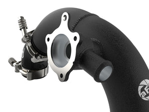 Smooth transitions in the mandrel-bent aluminum pipes decrease turbulence and minimize pressure loss, increasing horsepower and torque. This charge pipe kit provides a smooth transition between the turbo and the engine for lower operating temperatures and increased power. This kit includes high-quality, stainless-steel, spring-loaded T-bolt clamps and heavy-duty, 5-ply, polyester reinforced silicone couplings. This charge pipe kit also features factory style billet aluminum quick-connect adapters with O-rings to ensure a leak-free fit while maintaining superior strength and durability. Finished in wrinkle black powder coating with a unique laser-etched aFe power logo for a custom look.