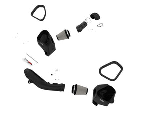 These 6" tall 360-degree radial flow air filters feature our oil-free Pro DRY S media with three layers of synthetic media for maximum convenience. Their progressive layering provides great filtration efficiency and dust holding capacity, while not requiring the use of oils. This media is best suited for street use. Their inverted top makes for more filter surface area, resulting in longer service intervals. The included high-performance air filters are surrounded by open-element XLPE (cross-linked polyethylene) polymer housings that minimize warm engine air for maximum performance. Their open design allows for easy viewing of the air filters and delivers an aggressive Air Intake sound. They utilize the vehicle's factory air inlet with no additional hardware. This system features high quality, computer-designed, dyno-tuned intake tubes to achieve maximum power gains while maintaining a perfect fit. Their black XLPE material is heat soak resistant and extremely durable. The longer tube passing in front of the engine features aluminum trim, securing the coolant hose and giving a unique look to your engine bay. An optional carbon fiber trim piece can be purchased separately (PN 54-13032CC). This is a direct fit intake system that utilizes factory mounting points and requires no cutting or modifications. All necessary clamps, couplings, and hardware are included. Its revolutionary design, featuring our patent pending filter-to-housing interface, uses half the number of parts of a traditional cold air intake system.