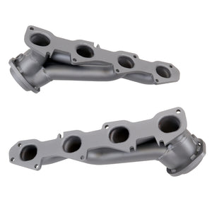 These BBK Performance shorty tuned Length exhaust Headers are designed and constructed as direct fit replacements for all 09-23 5.7L Challenger Charger Hemi applications. Each header is manufactured with 1-3/4 in. CNC mandrel bent tubing that offers unrestricted exhaust flow for increased horsepower and torque over factory OEM manifolds. BBK tuned Length headers offer improved scavenging waves for better combustion, which leads to improved performance and fuel economy over stock or equal Length headers. As with all BBK Performance exhaust headers they feature a 3/8 in. laser cut exhaust flange for additional strength and a guaranteed leak free fit. All headers are robotically and precision hand welded and then pressure tested to ensure years of reliability and performance in the real world. All BBK exhaust headers are available in a titanium ceramic or polished silver ceramic coated finish and include new exhaust header gaskets, header bolts and hardware to complete the installation.