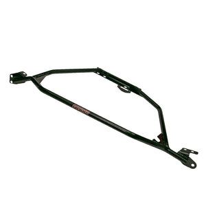 A BBK Performance Mustang strut tower brace helps stiffen up the front end of any Ford Mustang by joining the front strut shock towers together. This transmits the load of each strut tower during cornering reduces chassis flex which improves front end geometry and steering on all Ford Mustangs. These braces are manufactured using super stiff steel tubing and they are available in or powder chrome or Black Powder coat finishes. All kits include all required hardware and brackets where required to help improve the performance handling of your Ford Mustang.