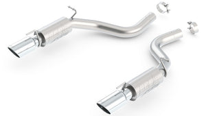 Installation REQUIRES Cutting Original (O.E.) Equipment Exhaust System.This 3" diameter BORLA® Axle-Back system features the aggressive ATAK® sound level. ATAK®, Acoustically-Tuned Applied Kinetics, technology is based on specifically-tuned attributes of the internal muffler cores, which are calibrated on a vehicle-by-vehicle basis to deliver the most desirable sound. Even though the sound on the exterior is uncompromising, there is no resonance inside the vehicle, a product of painstaking engineering and over 40 years of experience. BORLA® systems unleash hidden horsepower. Increased exhaust velocity adds power, driving excitement, fuel economy, and the distinctive BORLA® Sound of Power respected by motoring enthusiasts everywhere. The system exits through single 4.5" round bright chrome on T-304 stainless steel tips on each muffler. Each system is built from premium T-304 stainless steel, superior to T-400 series knockoffs (such as 409), to give you the absolute best in performance and durability. Ultra-smooth mandrel bends ensure maximum flow & power, and precision computer numerical control (CNC) manufacturing ensures an accurate fit. Best of all, BORLA® stands behind every system with a Million-Mile Warranty. Just what you’d expect from the world’s most experienced (and most winning) exhaust brand.
