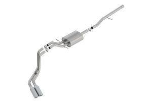 The Borla(r) 140797 ATAK(r) Cat-Back(tm) is tuned for sound and performance specifically for the 5.3L engine in the Silverado and Sierra 1500. For the owner who is looking for an aggressive and head-turning sound, we recommend our ATAK(r) system. It provides a drastic difference in tone and overall volume from the much quieter stock exhaust system while maintaining a drone-free driving experience inside the vehicle. This Cat-Back(tm) system features a dual side exit with round rolled tips in a bright chrome finish on T-304 stainless steel and bolts on to the factory exhaust for ease of installation. Each system is built from premium T-304 austenitic stainless steel, superior to T-400 series knockoffs (such as 409), to give you the absolute best in performance and durability. Ultra-smooth mandrel bends ensure maximum flow & power, and precision computer-controlled CNC manufacturing ensures an accurate fit. You can count on Borla(r) to provide durability, performance, sound, and a Million-Mile Warranty