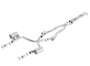 This system INCLUDES functioning MDS (multi-displacement system) valves. System features a X-Pipe for improved performance. System also features Borla(r)'s Polyphonic Harmonizer Technology which utilizes patented units that contain pipes of different diameters and lengths to create multiple exhaust notes that harmonize to deliver a clean, rich, full-bodied sound to the Borla(r) mufflers. The mufflers then enhance this sound to the character and volume appropriate for our Touring, S-Type and ATAK(r) systems. Tips NOT included. Use factory valance / tips. Borla(r) Cat-Back(tm) & Axle-Back exhaust systems feature patented straight-through and multi-core technology to unleash hidden horsepower. Increased exhaust velocity adds power, driving excitement, fuel economy, and the distinctive Borla(r) Sound of Power respected by motoring enthusiasts everywhere. Each system is built from premium T-304 austenitic stainless steel, superior to T-400 series knockoffs (such as 409), to give you the absolute best in performance and durability. Ultra-smooth mandrel bends ensure maximum flow & power, and precision computer numerical control (CNC) manufacturing ensures an accurate fit. Best of all, Borla(r) stands behind every system with a Million-Mile Warranty. Just what you'd expect from the world's most experienced (and most winning) exhaust brand.