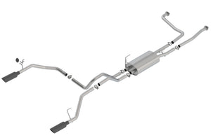 The Borla(r) R&D Team has designed a great performance Cat-Back(tm) system for the Nissan Titan. The 2.25" diameter Borla(r) system is True Dual. The muffler contains an internal H-Pipe for increased performance and improved sound. This Cat-Back(tm) system is going to deliver a significant improvement in sound that will give your Titan a more exciting driving experience. The Borla(r) S-Type sound level is specifically tuned for performance and sound on the Nissan Titans 5.6L V8 engine giving the truck a proper V8 growl and the distinct Borla(r) sound. As expected from Borla(r), the system is drone-free to ensure an enjoyable ride. This system features 4" black chrome on T-304 stainless steel tips. Using Borla(r) Stainless Steel Polish p# 21461 is NOT recommended with these black chrome tips. We suggest cleaning the tips with hot water and a microfiber cloth. A system with bright chrome on T-304 stainless steel tips is also available. Ultra-smooth mandrel bends ensure maximum flow & power, and precision computer numerical control (CNC) manufacturing ensures an accurate fit. The system is made of T-304 stainless steel  and comes with the Borla(r) Million Mile Warranty. Bolt on a Borla(r) and hear the Titan roar!