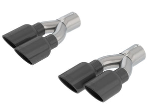 This tip kit contains 2) tip assemblies with a total of 4) outlets. These single 3" Inside Diameter (I.D.) Inlet with dual 4" round Outside Diameter (O.D.) Outlets black chrome on T-304 stainless steel outlets tips are the perfect way to customize the appearance of your Grand Cherokee Trackhawk. They are designed to fit BORLA® Cat-Back™ systems 140755 and 140756 ONLY. They will NOT fit on the Original Equipment (O.E.) exhaust system and will NOT fit vehicles equipped with O.E. trailer hitch. Using BORLA® Stainless Steel Polish p# 21461 is NOT recommended with these black chrome tips. We suggest cleaning the tips with hot water and a microfiber cloth. They are designed to be clamped on (clamps not included, use clamps included in BORLA® system). To install tips, insert inlet ends of BORLA® tip assemblies into outlets of rear muffler assemblies. When using these tips the tailpipe adapters (620359) included in the Cat-Back™ system are NOT used. Tip dimensions 3" I.D. Inlet, Dual 4" Outlets, 15.5" Overall Length. Built from premium T-304 stainless steel, superior to T-400 series (such as 409), to give you the absolute best in performance and durability. Precision computer numerical control (CNC) manufacturing ensures an accurate fit. BORLA® tips are available in a wide range of materials, finishes, sizes, and styles. They are the perfect way to give your vehicle a custom appearance. Best of all, BORLA® exhaust tips are covered under our Million-Mile warranty with the following exceptions. BORLA® will warranty black coatings, tip finishes, and carbon fiber parts for one year.