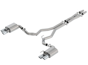 System will fit Bullitt models. NOT recommended for use on Convertibles. 3" diameter system contains a merge X-Pipe for increased performance and improved sound. System has Sound Suppressing exhaust valves. System features Borla(r)'s Polyphonic Exhaust Harmonizer which utilizes patented units that contain pipes of different diameters and lengths to create multiple exhaust notes that harmonize to deliver a clean, rich, full-bodied sound to the Borla(r) mufflers. The mufflers then enhance this sound to the character and volume appropriate for our Touring, S-Type and ATAK(r) systems. This system features bright chrome on T-304 stainless steel tips. Borla(r) Cat-Back(tm) and Axle-Back multi-core technology is designed to unleash hidden horsepower. Increased exhaust velocity adds power, driving excitement, fuel economy, and the distinctive Borla(r) Sound of Power respected by motoring enthusiasts everywhere. Each system is built from premium T-304 stainless steel, superior to T-400 series knockoffs (such as 409), to give you the absolute best in performance and durability. Ultra-smooth mandrel bends ensure maximum flow& power, and precision computer-controlled CNC manufacturing ensures an accurate fit Best of all, Borla(r) stands behind every system with a Million-Mile Warranty. Just what you'd expect from the world's most experienced (and most winning) exhaust brand.