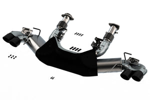 2024-2025 includes E-Ray. Developing systems for the C8 Corvette presented Borla(r) engineers with unique challenges, but our team was up to the challenge. This 3" inlet Cat-Back(tm) system includes both AFM ('20-'21)/ DFM ('22-'25) valves and NPP dual mode exhaust valves. It features the aggressive ATAK(r) sound with no drone inside the vehicle. It features our Polyphonic Harmonizer and SwitchFire(r) technology. Borla(r) 'S Polyphonic Harmonizer Technology utilizes patented units that contain pipes of different diameters and lengths to create multiple exhaust notes that harmonize to deliver a clean, rich, full-bodied sound. Completely eliminating the turbulent center intersection of a standard X-Pipe, Borla(r) 'S patented SwitchFire(r) design truly blends the combustion pulses from both sides of the engine for improved performance and a custom aggressive sound. Strategically placed heat shielding is included to prevent exhaust heat damage and protect your Corvette. It comes with 4" round black chrome on T-304 stainless steel tips. Using Borla(r) Stainless Steel Polish p# 21461 is NOT recommended with these black chrome tips. We suggest cleaning the tips with hot water and a microfiber cloth. Systems are also available with bright chrome on T-304 stainless steel tips, or carbon fiber tips. The system is constructed using T-304 stainless steel and is backed by our Million Mile Warranty. System ships in 2 boxes. Note: After installation of the Borla(r) system, the controllers for the AFM/ DFM valves and NPP valves in the exhaust system should be RE-CALIBRATED according to GM Document ID 5406413. Borla(r) recommends taking your car to the nearest Chevrolet dealer for the recalibration service. System Features: Cat-Back(tm) Exhaust System Includes AFM/ DFM And NPP Valves ATAK(r) Sound Level SwitchFire(r) Technology Heat Shielding 4" Round Black Chrome On T-304 Stainless Steel Tips T-304 Stainless Steel Construction Million Mile Warranty