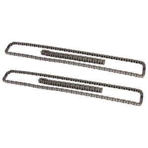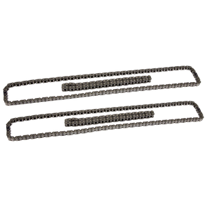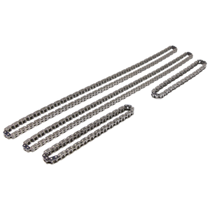 The COMP Cams Hi-Tech Timing Chain Sets for Ford Coyote engines are designed to withstand the stresses of upgraded, modified applications and are the perfect choice when replacing fatigued, worn out factory chains. Any time the cams are being upgraded in a Ford Coyote engine, or it is being built for high RPM racing use, replacing the tired, stock timing chains is a must. The new COMP Cams Hi-Tech Ford Coyote Timing Chain Sets feature heavy-duty secondary chains with 15% thicker plates than the factory chains, which helps to prevent common secondary chain failure. These kits also include premium quality primary chains that are ideal for any high performance or racing application. Whether simply upgrading camshafts or doing a full race engine build, these timing chain sets provide the durability needed in aggressive racing environments. Sets include two primary and two secondary chains.