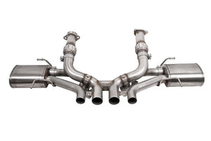 The CORSA Performance C8 Z06 catback exhaust assortment writes a new chapter in the long history of CORSA's dominance of the Corvette exhaust marketplace. CORSA's NPP 2 valve exhaust system unlocks an all new experience behind the wheel of the C8 Z06's 5.5L LT6 V8 engine by inducing exotic exhaust notes while simultaneously providing the best-in-class no drone driving experience on the road. Cold Starts from the C8 Z06 NPP exhaust system are civil courtesy of CORSA's valve operated multi-path muffler system, while heavy acceleration unlocks an awe-inspiring cascade of sound. Featuring CORSA's exclusive new and improved C8-Spec cast valve assembly and custom tuned RSC(R), no drone mufflers, the CORSA C8 Z06 NPP exhaust system perfectly integrates to the stock actuators allowing the driver to maintain full control of all driving modes. Simply put no other exhaust system compares to the CORSA Performance C8 Z06 NPP exhaust system. The C8 Z06 catback exhaust systems features 304 stainless steel construction, braided stainless flex couplers, custom tuned C8 Z06 mufflers, C8-Spec serviceable cast valve assembly, C8 wiring harness extensions, solid hangars, solid rod hangars and is fully engineered and built in the USA. If you want the best for your C8 Z06 look no further than CORSA Performance. The CORSA C8 Z06 exhaust system is backed by a Lifetime Warranty.
