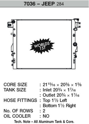 CSF has over 5 decades of experience manufacturing radiators. So when it comes to keeping your engine cool and your Wrangler running at its best, a CSF Heavy-Duty/High-Performance All-Aluminum Radiator is the obvious choice. Designed to perform on and off road, a heavy-duty performance radiator is a must-have for off-roaders, overlanders, and adventurers. This radiator features a 2-Row core with CSF's exclusive B-Tube Technology: Unlike a regular oval shape "O" type radiator tube, CSF uses a specially engineered tube in the shape of a "B". These "B-tubes" are carefully formed and then brazed over the seam to seal. CSF is able to use thinner and lighter aluminum material (with better cooling efficiency) because this design is actually stronger than normal "O" shape tubes that are welded. The design (inlet in the middle of the tube that is seam brazed) increases the heat transfer surface area of the tubes by approximately 15% over regular tubes - producing the efficiency of two smaller tubes vs. one large tube within the same space criteria. With "B-tubes" you are able to get "dual liquid laminar flow". CSF also uses ultra efficient multi louvered fins that are carefully and precisely aligned to maximize airflow through each radiator core. Fin specifications are carefully measured and calculated for each application, and tested for maximum heat rejection efficiency in our wind-tunnel lab.