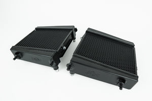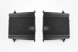 Don't be fooled by other high-performance aftermarket options that utilize the OEM plastic rock guard. The OEM rock guard's vertical channel design is specifically designed to only work with the tube spacing found on the OEM core. When the OEM rock guard is installed on an aftermarket radiator, it actually blocks a significant amount of surface area. Obviously this is detrimental to the intended performance. During CSF's own R&D phase, CSF analyzed both the OEM and other aftermarket offerings and decided to go the extra mile. CSF redesigned the included rock guard to allow maximum flow to the radiator core, while still offering ample protection from small rocks and road debris - all proven on CSF's in-house wind tunnel. CSF's new Auxiliary Radiator fits both the left and right side of the vehicle as a drop-in fit. Thus requiring no modifications to install. Each features CNC machined mounting brackets and OEM style "Quick Connect" inlet/outlet connections. This makes for a true plug-and-play installation that does not interfere with aftermarket performance aero modifications.