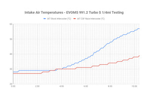 CSF's Porsche 991 Turbo intercoolers have been race-tested, logged, and fully validated by some of the world's best Porsche tuners. These intercoolers have been regarded as the "Go-To" option for the best performance and value available in the performance aftermarket. From first glance the increase in width from the OEM's 80mm core to the CSF's 115mm width is very apparent. Critical for vehicles running performance tunes with bolt-on modifications. Considered a mandatory upgrade for vehicles running upgraded turbo systems. The larger capacity CSF bar/plate core design can handle significantly more airflow + increased boost pressures compared to the OEM intercooler system. CSF's 100% TIG welded cast end tanks, paired with its high-efficiency bar/plate intercooler core. Compared to the OEM style tub/fin core, which is crimped onto the plastic end tanks. The weaker OEM design can crack under high boost or vibrations typical to race conditions. The design of CSF's end tanks allows for airflow to be distributed evenly throughout the entire intercooler compared to the OEM intercooler design which is much shallower. The OEM design makes it more difficult for airflow to reach the top/bottom tube sections at the ends of the intercooler. CSF's Porsche 991 Turbo intercoolers are finished with an aero-space grade, Nano-particle, heat dispersion coating that dissipates heat around 35% better than uncoated raw aluminum. The coating is applied in California, USA by an aerospace coating company who also supplies coatings for Boeing. This unique coating is a key feature to achieving world-record performance, exclusively available from CSF.