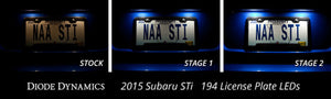 Features Includes all the LEDs you need to replace the interior incandescent bulbs Increased output with LED appearance Plug-and-play, simple installation Available in multiple colors and brightness levels. Overview Upgrade. This Interior LED Bulb Pack is compatible with the Subaru WRX STi and gives your vehicle a more modern appearance. this pack includes all the LEDs you need to replace the factory vanity, map, trunk, dome, and license plate incandescent bulbs. These bright LEDs are available in a number of colors including cool white, red, and blue, to match your unique style. Brightness. this pack is available in two different brightness levels. The Stage 1 option is a good choice if you're looking for a simple change of color, and slightly brighter output than your factory bulbs. For the highest increase in light output from your factory bulbs, we'd recommend the Stage 2 option! All Diode Dynamics LED lighting is rated with accurate, measured lumen figures, not calculations or guesses. We test the true output in-house, and provide you the real numbers to compare. Reliability. Unlike other bulbs on the market, Diode Dynamics LEDs are built with constant-current inductive circuitry, along with transient suppression. While more expensive than simple bulbs, this allows Diode Dynamics LEDs to last for years, with no flickering or failure. What's Included Two (2) 28mm Cool White Vanity Bulbs Two (2) 31mm Cool White Map Light Bulbs Two (2) 194 Cool White License Bulbs One (1) 194 Cool White Trunk Bulb One (1) 31mm Cool White Dome Bulb Installation Guide