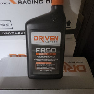 DRIVEN FR50 Racing Oil is formulated for High Performance Engines/Racing applications only. This engine oil will NOT MEET any current API or OEM Engine Oil Specifications.