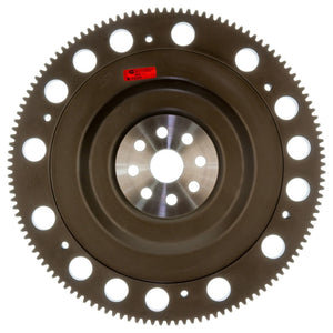 Exedy flywheels combine low weight, low inertia and high thermal capacity.  They are designed for lightly tuned racing cars and drag racing, autocross and rally events, as well as street usage. They are made from solid one-piece billet chromoly steel or chromoly steel forgings. They are specifically designed to reduce weight and inertia for better engine response. Most incorporate special design features to enhance airflow and cooling of the clutch. The ring gear teeth are integrated onto the flywheel unlike an aluminum flywheel where the ring gear is pressed onto the flywheel and has the possibility of separating due to different expansion coefficients of aluminum vs. steel. Exedy steel billet and forged steel flywheels have passed engineering tests to 15,000-18,000 rpm and guaranteed not to fail to the said rpm and are all SFI approved.