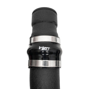 This upgraded charge pipe system is manufactured from oversized mandrel-bent 6061 aluminum and every bend and TIG weld is completed by hand at the Injen Technology headquarters in Pomona, California. The Injen hot-side pipe has an ID of 3.00in and the cold side has an ID of 3.25in. By utilizing oversized piping on both the hot side and the cold side, these charge pipes are able to reduce restriction, balance the airflow in and out of the intercooler to improve performance, and lower engine damaging exhaust gas temperatures (EGTs).