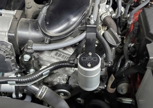 During the process of venting crankcase pressure back through your intake track, large amounts of oil, in the form of vapors can gather/accumulate in your intake tube, intake manifold runners and even dilute your gas, lowering its octane level. This happens on all engines and is even worse with forced inducted vehicles (supercharged and turbocharged) as crankcase pressures are increased. To combat this, we have developed an oil separator of our own design. Milled from solid billet aluminum this is a rock-solid piece. It has a knurled tank base for easy removal to drain the spent oil and an O-ring seal to prevent any leaks. Filtering consists of a fine mesh stainless steel screen that traps fine oil vapors and releases them once heavy enough to fall. They then pass through a 1/2" thick 1/16th" aluminum honeycomb filter where they grow every larger and then fall into the bottom. By the time the oil gets through the filter it's too heavy to be passed on into the intake. The tank holds 3 oz of fluid, while that may not sound like a lot, you shouldn’t see that much oil in your PCV system. Drain it every 2000-3000 miles and you will never come close to filling it.