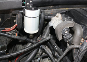 During the process of venting crankcase pressure back through your intake track, large amounts of oil, in the form of vapors can gather/accumulate in your intake tube, intake manifold runners and even dilute your gas, lowering its octane level. This happens on all engines and is even worse with forced inducted vehicles (supercharged and turbocharged) as crankcase pressures are increased. To combat this, we have developed an oil separator of our own design. Milled from solid billet aluminum this is a rock-solid piece. It has a knurled tank base for easy removal to drain the spent oil and an O-ring seal to prevent any leaks. Filtering consists of a fine mesh stainless steel screen that traps fine oil vapors and releases them once heavy enough to fall. They then pass through a 1/2" thick 1/16th" aluminum honeycomb filter where they grow every larger and then fall into the bottom. By the time the oil gets through the filter it's too heavy to be passed on into the intake. The tank holds 3 oz of fluid, while that may not sound like a lot, you shouldn’t see that much oil in your PCV system. Drain it every 2000-3000 miles and you will never come close to filling it.