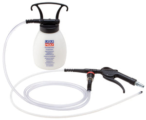 Aspecial tool for the application of the LIQUI MOLY A/C System Cleaning Fluid (part no. 20001). Produces a circular spray pattern to allow proper cleaning of evaporator. The reservoir uses a quick connector for easy hook-up and handling during application.