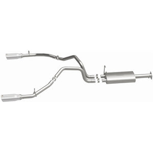 The MagnaFlow 2019-2024 Ram 1500 Street Series Cat-Back Performance Exhaust System 19429 brings out the personality of your 5.7L 2019-2023 Ram 1500 with our signature resonant, powerful engine tone and dyno-proven performance. Thanks to its fast-flowing, mandrel bent 3in. main piping and 1 Straight-Through mufflers ending in a Dual Split Rear exit with 5in. Polished Welded-On Double Wall Angle Cut Rolled Edge tips, this Ram 1500 exhaust kit has the performance chops to match its sporty sound and appearance. Upgrade your ride to the next level with an exhaust that has the pipes to put other Ram 1500's to shame. With this system your vehicle will be producing Aggressive exterior and Moderate interior sound levels while leaving other cars and trucks feeling envious at every stoplight. Exhaust kit 19429 features a cat-back layout that replaces your ride's stock exhaust components from near the catalytic converter on back. Extensive 3D scanning during development has resulted in a direct-fit design that you can easily install yourself. 19429 is produced using CNC precision robotic manufacturing techniques and is backed by MagnaFlow's 1-year limited finish warranty and limited lifetime construction warranty.