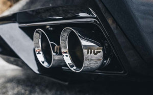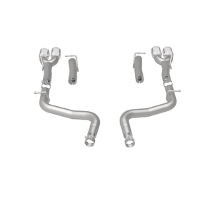 The MagnaFlow 2015-2023 Dodge Challenger Race Series Axle-Back Performance Exhaust System 19218 doesn't leave any performance on the table with a race-ready, light weight, dyno-proven design ready to help your 3.6L 2015-2023 Dodge Challenger take on any pretenders, whether on the track or the street. Exhaust kit 19218 is engineered to produce our powerful, resonant signature exhaust note at Very Aggressive exterior and Aggressive interior sound levels with an axle-back layout that replaces your vehicle's exhaust components from near the rear axle on back. Please check to ensure compliance with local noise regulations. This Dodge Challenger exhaust kit features fast-flowing mandrel bent 2.5in. diameter main piping that ends in a Quad Split Rear exit with 3.5in. Polished Welded-On Double Wall Angle Cut Folded Edge tips. Extensive 3D scanning during development and the use of advanced CNC precision robotic manufacturing techniques ensures that 19218's direct-fit design fits so perfectly that you can easily install the system yourself. The durable, corrosion resistant stainless steel construction of exhaust system 19218 is backed by MagnaFlow's limited lifetime warranty.
