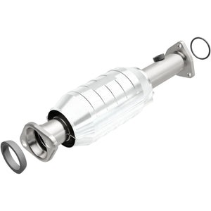 Keep the check engine light off with MagnaFlow HM Grade Federal/EPA Compliant Direct-Fit Catalytic Converter 22629. With features including free-flowing mandrel-bent tubing and highly corrosion resistant stainless steel construction, easily install this spun body converter yourself using the proper tools, no cutting or welding required. MagnaFlow's state-of-the-art metrology department uses the latest 3D scanning systems during research and development, so you can be confident that your new part will fit and function like the original equipment. By replicating the OE spun body design, the single laser fusion weld greatly reduces the possibility of a leak, and our compact, low-mass design also allows for greater thermal efficiency. This direct-fit catalytic converter is designed specifically for the 1996-1999 Acura Integra and interchanges with OE parts 18160-P75-A11 and 18160-P75-A61, among others. The included gaskets & hardware reduce the possibility of a leaking seal while avoiding the need to reuse corroded factory parts for installation. This replacement part is designed to meet or exceed Federal emissions requirements set forth by the EPA, complying with legal standards for OBDII Federally registered vehicles with Federal/EPA Emission systems.