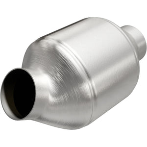 Keep the check engine light off with MagnaFlow OEM Grade Federal/EPA Compliant Universal Catalytic Converter 51775. The Universal design allows the part to fit a wide array of vehicles (cutting and welding required), and the stainless steel construction of this spun body catalytic converter is highly resistant to corrosion. The single laser fusion weld of the spun body greatly reduces the possibility of a leak, and our compact, low-mass design also allows for greater thermal efficiency. This replacement part is designed to meet or exceed Federal emissions requirements set forth by the EPA, complying with legal standards for OBDII Federally registered vehicles with California or Federal/EPA Emission systems.