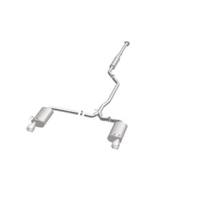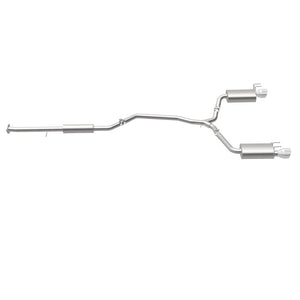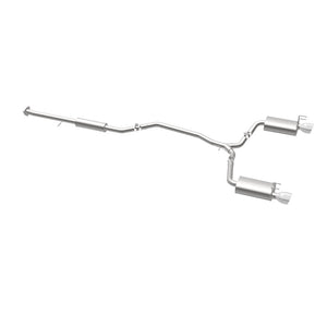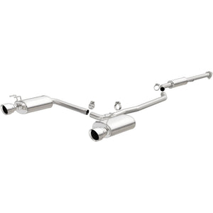 The MagnaFlow 2013-2017 Honda Accord Street Series Cat-Back Performance Exhaust System 19181 brings out the personality of your 3.5L 2013-2017 Honda Accord with our signature resonant, powerful engine tone and dyno-proven performance. Thanks to its fast-flowing, mandrel bent 2.25in. main piping and 3 Straight-Through mufflers ending in a Dual Split Rear exit with 4.5in. Polished Welded-On Double Wall Angle Cut Folded Edge tips, this Honda Accord exhaust kit has the performance chops to match its sporty sound and appearance. Upgrade your ride to the next level with an exhaust that has the pipes to put other Honda Accord's to shame. With this system your vehicle will be producing Moderate exterior and Mild interior sound levels while leaving other cars and trucks feeling envious at every stoplight. Exhaust kit 19181 features a cat-back layout that replaces your ride's stock exhaust components from near the catalytic converter on back. Extensive 3D scanning during development has resulted in a direct-fit design that you can easily install yourself. 19181 is produced using CNC precision robotic manufacturing techniques and is backed by MagnaFlow's 1-year limited finish warranty and limited lifetime construction warranty.