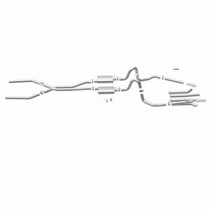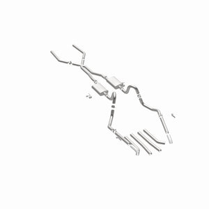 The MagnaFlow Street Series Crossmember-Back Performance Exhaust System 15893 brings enhanced engine sound and dyno-proven performance to your muscle car with a healthy helping of our deep, resonant signature exhaust note at Moderate exterior and Mild interior sound levels. Thanks to its durable, corrosion resistant stainless steel design, this exhaust system will handle whatever tarmac you decide to leave your mark on. This performance exhaust kit features a crossmember-back layout designed to replace your exhaust system from the crossmember on back. With its fast-flowing, mandrel bent 2.5in. main piping and 2 Straight-Through mufflers ending in a Multiple Exit Options exit with 2.75in. Polished Weld-On Single Wall Turndown Cut Edge tips, your muscle car will be sounding as awesome as it looks. Extensive 3D scanning during development has resulted in a direct-fit design that you can easily install yourself. 15893 is produced using CNC precision robotic manufacturing techniques and is backed by MagnaFlow's limited lifetime construction warranty.