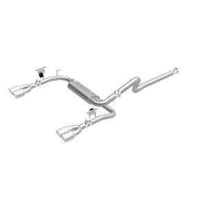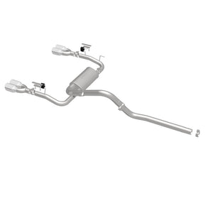 The MagnaFlow Street Series Cat-Back Performance Exhaust System 16723 brings out the personality of your Car with our signature resonant, powerful engine tone and dyno-proven performance. Thanks to its fast-flowing, mandrel bent 3in. main piping and 1 Straight-Through mufflers ending in a Quad Split Rear exit with 4in. Polished Welded-On Double Wall Angle Cut Rolled Edge tips, this Car exhaust kit has the performance chops to match its sporty sound and appearance. Upgrade your ride to the next level with an exhaust that has the pipes to put other Car's to shame. With this system your vehicle will be producing Moderate exterior and Mild interior sound levels while leaving other cars and trucks feeling envious at every stoplight. Exhaust kit 16723 features a cat-back layout that replaces your ride's stock exhaust components from near the catalytic converter on back. Extensive 3D scanning during development has resulted in a direct-fit design that you can easily install yourself. 16723 is produced using CNC precision robotic manufacturing techniques and is backed by MagnaFlow's 1-year limited finish warranty and limited lifetime construction warranty.