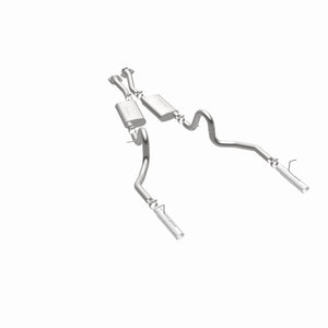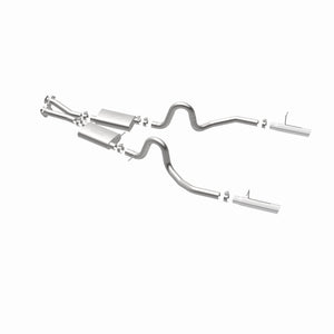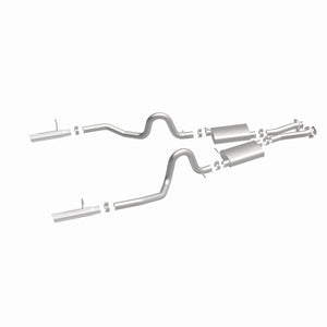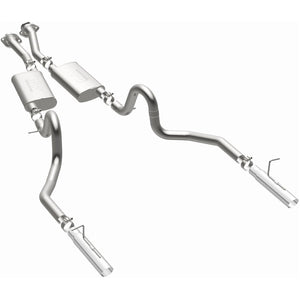 The MagnaFlow 1986-1993 Ford Mustang Street Series Cat-Back Performance Exhaust System 15630 brings out the personality of your 5.0L 1986-1993 Ford Mustang with our signature resonant, powerful engine tone and dyno-proven performance. Thanks to its fast-flowing, mandrel bent 2.5in. main piping and 2 Straight-Through mufflers ending in a Dual Split Rear exit with 3in. Polished Clamp-On Single Wall Angle Cut Cut Edge tips, this Ford Mustang exhaust kit has the performance chops to match its sporty sound and appearance. Upgrade your ride to the next level with an exhaust that has the pipes to put other Ford Mustang's to shame. With this system your vehicle will be producing Moderate exterior and Mild interior sound levels while leaving other cars and trucks feeling envious at every stoplight. Exhaust kit 15630 features a cat-back layout that replaces your ride's stock exhaust components from near the catalytic converter on back. Extensive 3D scanning during development has resulted in a direct-fit design that you can easily install yourself. 15630 is produced using CNC precision robotic manufacturing techniques and is backed by MagnaFlow's 1-year limited finish warranty and limited lifetime construction warranty.