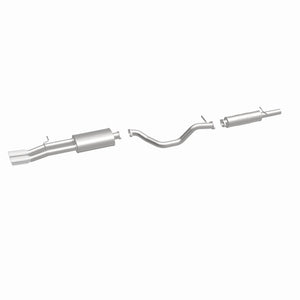 The MagnaFlow 1999-2003 Volkswagen Jetta Sport Series Cat-Back Performance Exhaust System 15669 enhances your 1.8L, 2.0L, 2.8L 1999-2003 Volkswagen Jetta with an aggressive character that is sure to help you stand out from the other Volkswagen Jetta you encounter on the street. With its 2.25in. diameter fast-flowing mandrel bent main piping that passes through 2 Straight-Through mufflers before ending in a Dual Straight Driver Side Rear exit with 3in. Polished Welded-On Single Wall Angle Cut Rolled Edge tips, this dyno-proven Volkswagen Jetta exhaust system refuses to be ignored. As such, 15669 is tuned to produce our powerful, resonant signature exhaust note at Aggressive exterior and Moderate interior sound levels, so please check to ensure compliance with local noise regulations. The system's cat-back design replaces all your import's stock exhaust components from the catalytic converter on back. Extensive 3D scanning and CNC precision robotic manufacturing techniques are used to ensure that your exhaust system fits perfectly with just a simple do-it-yourself installation process. The durable, corrosion resistant stainless steel construction of 15669 is backed by MagnaFlow's limited lifetime warranty.