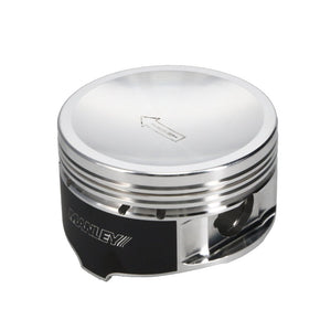 2618 Alloy Forgings: We use domestic 2618 alloy forgings, ensuring superior strength and performance.Chrome Moly Wrist Pins: Premium Chrome Moly wrist pins come standard with our Standard Series Pistons. For select SKUs, we offer wrist pin upgrades to 9310 and Turbo Tuff/DLC alloys, providing additional durability.Exacting Ring Lands and Grooves: We adhere to strict standards for piston ring lands and grooves, resulting in enhanced ring seal and more power.Cam and Barrel Profiles: Our pistons boast cam and barrel (skirt) profiles that generate substantial power while being gentle on cylinder walls.Unique Fixturing: Manley's unique fixturing allows for skirt turning and ring groove machining in a single operation, ensuring ultimate ring groove to skirt squareness.