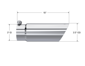 The exhaust tip is the crowning touch to your performance exhaust. It is your opportunity to really show off your personal style. That's why MBRP offers such a wide assortment of high quality, bolt on tips, because everybody has their own idea of style. MBRP offers T304 polished stainless, Black coated, Burnt End and Carbon Fiber tip options in various sizes. The tips are universal fit so be sure to measure your tail pipes outside diameter and match it to the MBRP tip INLET diameter before ordering.