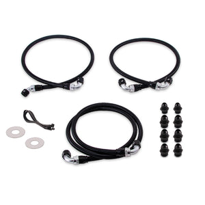Every truck owner knows that it doesn't matter how powerful or reliable your engine is if you can't get any power to the wheels. The transmission mated to your 2006-20010 LLY/LBZ/LMM Duramax is essential to everything your truck does, and keeping it cool is crucial. Upgrading your transmission cooler with a Mishimoto performance transmission cooler is a good start, but the fluid still needs to get to the cooler. That's where this 2006-20010 LLY/LBZ/LMM Transmission Line Kit comes in. These high performance lines are constructed with a durable PTFE line that's wrapped in a high-strength nylon braid. The PTFE line is extremely oil and heat resistant for durability in even the harshest environments. To protect the lines against higher line pressures that come with performance transmissions, We've wrapped them in braided high-strength nylon. This wrap prevents expansion and further protects the lines from abrasion. Finally, these lines are capped off with -10AN fittings for a secure and leak-free connection. Like all Mishimoto Duramax products, these transmission lines are backed by our Mishimoto Lifetime Warranty for a lifetime of performance.