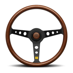 MOMO Mod.07 350mm Wheel - Mahogany Wood w/ Black Anodized Aluminum Spokes & Heritage MOMO Logo