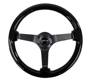 NRG Reinforced Steering Wheel (350mm / 3in. Deep) Black w/Black Chrome Solid 3-Spoke Center