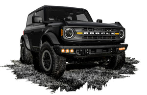 ORACLE Lighting has designed a LED triple fog light kit for the steel factory modular (?mod") bumper on the 2021+ Ford Bronco. Quickly add functional forward-facing LED lighting to your vehicle to illuminate any adventure. The six high-powered emitters provide significant visibility through advanced optics with a 6000 raw Lumen output and a precise no-glare design that avoids blinding other drivers. The powder coat finish, blacked-out appearance, and IP68 waterproof rating offers a sleek look with superior durability to withstand any conditions. The simple bolt-on installation uses factory bolt locations and requires no drilling or modifications for the Bronco fog light kit. Typical installation time is under 30 minutes and can be successfully installed using common hand tools by even the most casual enthusiast. This complete kit includes 2 assembled steel housings, 6 LED Emitters, Wiring Harness, and all necessary hardware. Score first-class LED lighting that illuminates wherever your adventures take you with the ORACLE Lighting Ford Bronco Triple Fog Light Kit!