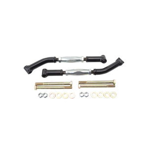 QA1 Adjustable Rear Frame Supports are engineered to improve handling, traction and all around suspension performance by eliminating unwanted chassis flex and reinforcing the upper and lower trailing arm mounts. Made from 1'' diameter cold rolled steel tubing, they feature zinc plated adjustable threaded sleeves for adjusting the preload in the rear trailing arm mount after installation. Designed to clear stock and aftermarket mufflers and includes all of the necessary hardware for an easy installation.
