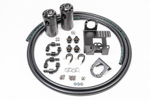 Dual catch can kit for the 1990-2005 Mazda MX-5 Miata.  Interfaces with both the PCV and crankcase vent lines. Easy bolt-in installation. Includes Radium's Fluid Lock catch can (patent pending).