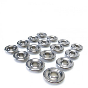 Skunk2's industry-leading Titanium Retainers for Honda's K-series engines are designed to significantly reduce valvetrain mass, resulting in more horsepower and improved valvetrain stability. Unlink other retainers, Skunk2 Titanium Retainers feature radius-cut edges for additional rocker arm clearance and reduced weight, strategically positioned lightening grooves, and reduced overall heights for better valve seal clearance and even further weight reduction. All Skunk2 Titanium Retainers are manufactured using the latest 3D CAD (Computer Aided Design) and FEA (Finite Element Analysis) to ensure that each is optimized for strength as well as for reduced weight. Skunk2 engineers then test and prove their designs on the engine dyno as well as the race track. Once approved for manufacturing, only medical-grade titanium that's been ultrasonically inspected and certified is used. Following CNC machining, each retainer is then individually inspected to ensure proper hole diameter, taper, and that each are free from machining defects to ensure proper installed valve spring heights and pressures. Finally, each Titanium Retainer is serialized for your protection, including valuable information, like material batch specifics as well as production and inspection dates. Skunk2 designs, develops, and tests its entire valvetrain lineup in-house to ensure superior quality and maximum performance gains. During development, each valvetrain component is tested both on the dyno and the road, including 11,000 rpm drag racing engines and 17,000 rpm superbikes. Manufactured from the best materials available, Skunk2 valvetrain components provide exceptional performance, reliability, and quality and remain standard-issue on each Skunk2 vehicle that we build and support.