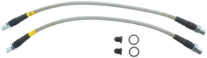 StopTech Stainless Steel Braided Brake Lines provide a quicker; firmer; more consistent pedal response by maintaining consistent brake pressure. Additionally; stainless steel lines provide precision brake modulation; especially during threshold braking. The improvement in pedal feel is more dramatic on older vehicles where the factory rubber line may have softened and swelled due to age. A variety of end fittings are available to meet application needs. All fittings are engineered for proper fit and durability. All necessary brackets and fasteners are included with each line kit.
