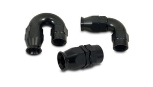 Vibrant's offering of non-swivel High Flow Hose End Fittings, designed exclusively for use with our offering of PTFE lined flex hose, deliver the type of quality, leak-free reliability and incredible ease of assembly that industry professionals will appreciate. Now also available in -12 AN. These CNC Machined 6061 Aluminum Alloy Hose Ends feature a full flow design and are optimal for use in race fuel systems as well as Nitrous, Cooling, Oil, Power Steering and Coolant (not suited for brake and hydraulic line applications). Each of these Hose Ends include an Aluminum olive that compresses to the PTFE liner for simple, leak free assembly. Available in Black Hard Anodized finish only.