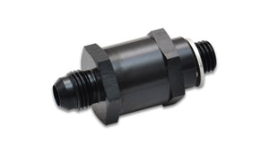 Vibrant Performance EFI Fuel Pump Check Valves are lightweight and constructed entirely from 6061 Aluminum alloy. Our EFI Fuel Pump Check Valves are designed to prevent flow back of all varieties of fuel, oil or coolant. Vibrant Check Valves will stand up to the most rigorous operating environments and are capable of handling temperatures ranging from -30deg F to 400deg F and operating pressures up to 300psi. All Vibrant Performance EFI Fuel Pump Check Valves are available in anodized black only. Flow Direction: Metric to AN